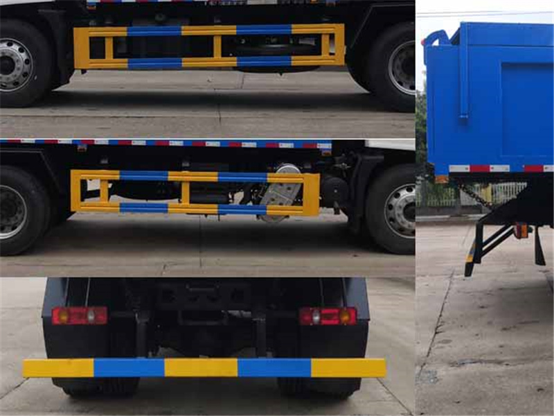 【上装】:国六东风天锦自卸式垃圾车采用Q235碳钢制作,侧后防护采用焊接连接,后部防护断面尺寸为120×50mm,后部防护离地高度(mm):500,该车专用装置为液压举升机构,自卸方式为后卸式,随底盘选装前雾灯;选装驾驶室顶部装饰灯;选装驾驶室前面罩;选装前保险杠及前部灯具,选装驾驶室前脸扰流罩,驾驶室卧铺侧窗装饰板,踏步结构,选装厢体盖。