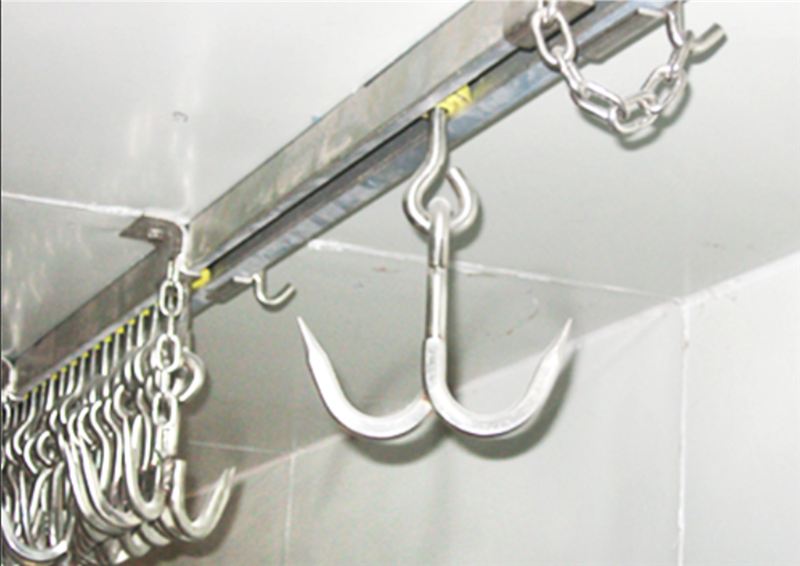 #对接式导轨# 跟屠宰场的导轨一样,肉钩直接滑过来,无需重新装卸,更方便,节约时间